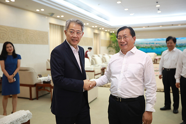 8月21日中午,省委常委、市委書記王忠林在龍奧大廈會見了中國光大集團黨委書記、董事長李曉鵬一行。